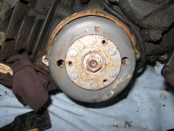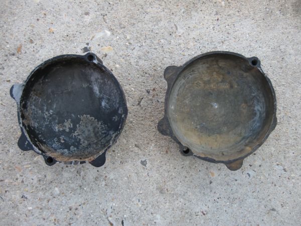 Bon coté carter d'allumage bah à l'intérieur c'était pas de la boue, mais de l'oxydation du magnésium provoqué par de l'eau qui est resté la dedans... Bon extérieurement (après nettoyage) il est mas mal (a droite sur la photo), mais à l'intérieur c'est un look moule avec de la rogne... J'en ai un autre (à gauche sur la photo) mais celui là faudra le repeindre car l'artiste qui s'en est occupé a des goûts de chiotte côté couleur 😄