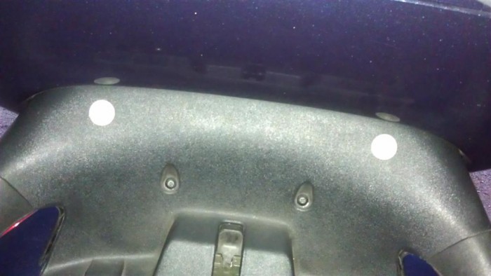 Les bouchons, blancs, paske j'ai pas en noir, permettent la dépose des deux vis cachées. 🙂