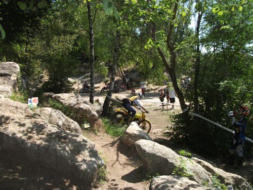 A Mende en 2005, j'ai pété la chaine dans la spéciale, qui opportunément était située au dessus de l'arrivée. J'ai un peu soulevé les banderoles pour ne pas pousser en montée ( faut pas déconner, à nos ages...), et je suis passé gentiment en roue libre devant la cellule avec la chaine autour du cou, et sur l'élan jusqu'au parc fermé !