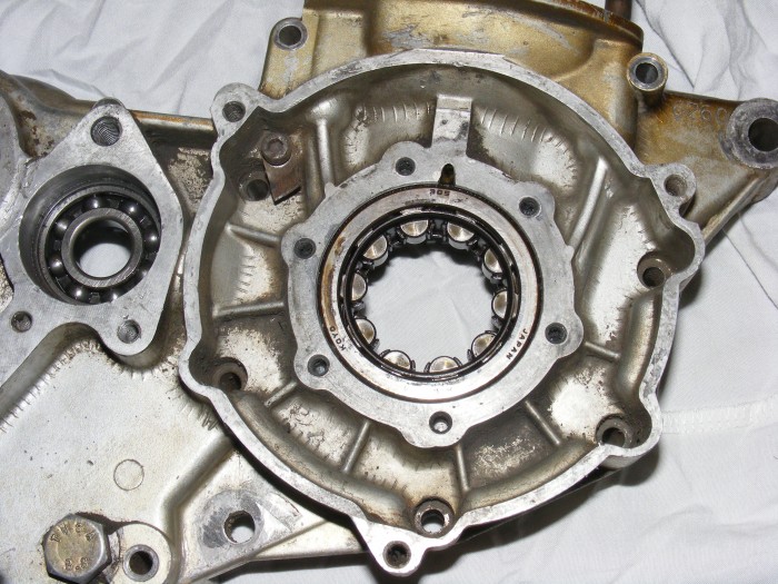 On voit bien les roulements NJ 305 mais on voit aussi que la joue du villo a frotteé sur le carter droit.