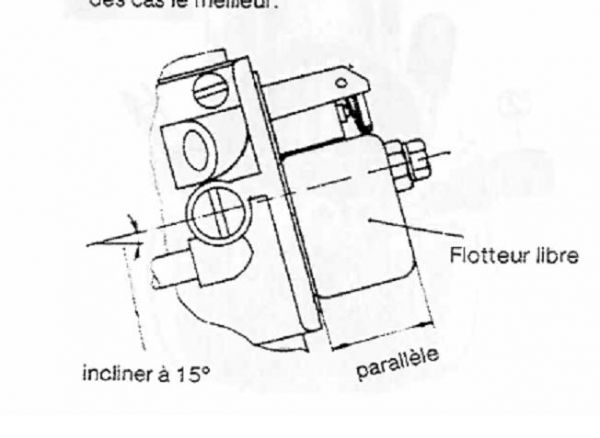 carbu maintenu comme l'image, le pointeau doit être fermé et étanche quand les flotteurs sont parallèles au plan de joint de la cuve...