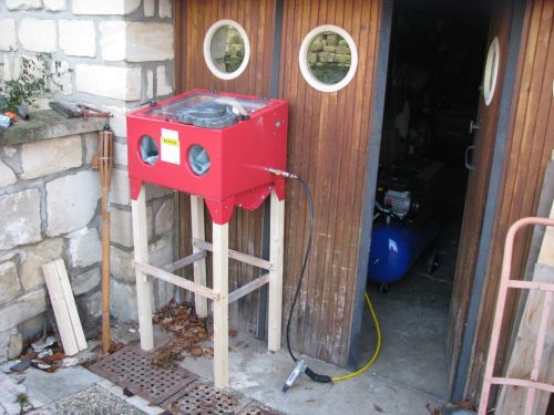 Bon les gars, j'ai essayé mon nouveau jouet!!! cadeau d'anniv' de ma p'tite femme, la cabine de sablage et je me suis payé un compresseur qui dépote pour aller avec...
