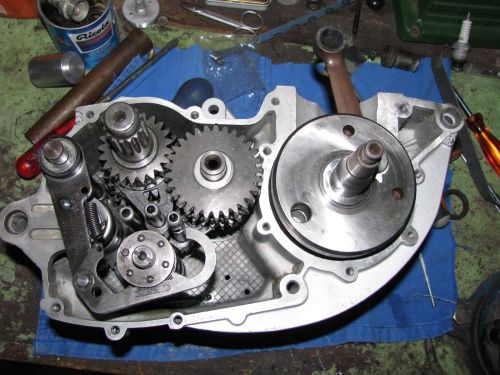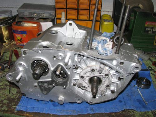 endurovintage a écrit :allez, deux heures de boulot cet aprèm, le bloc est refermé, les vitesses passent bien, je jeu latéral du vilo est calé (large puisque c'est un montage avec des 6205 C3 standards) l'arbre de kick neuf est monté. Demain, j'attaque la transmission primaire et l'embrayoir histoire de refermer le coté gauche....