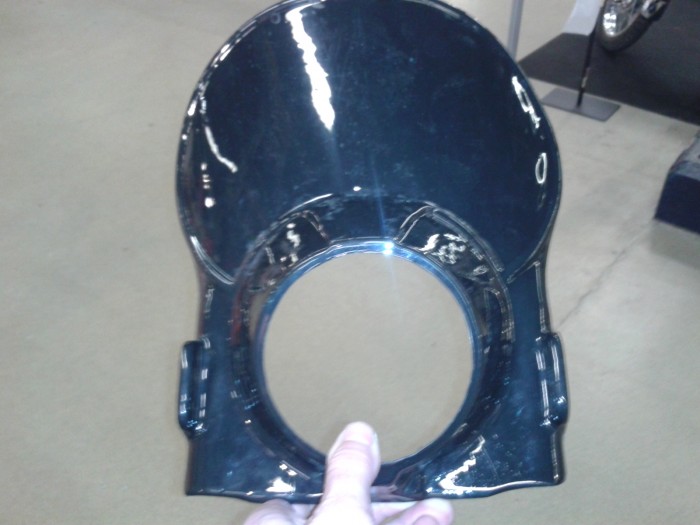 ci dessous le dernier produit sorti des moules dans sa version prototype. Beau produit, fidèle à l'origine car moulée à partir d'une vraie plaque 78. La version finale sera blanche, mieux finie (plus lisse et régulière) et dans un plastique plus souple et moins cassant que le proto. Plaque phare de 125/240/400 KTM GS 78 à fourche Marzocchi PA35ZTI (axe déporté)