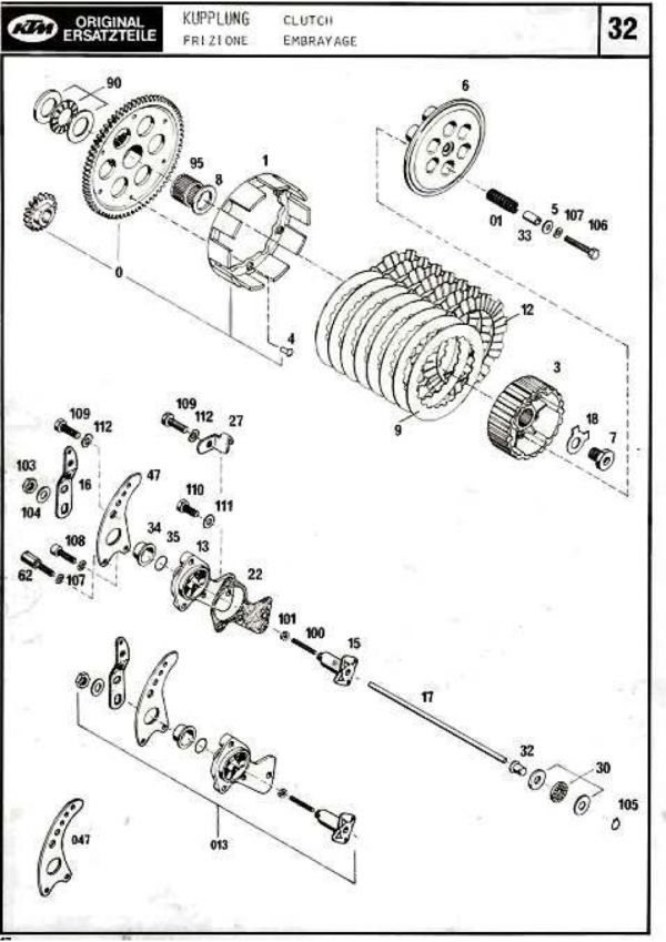 Merci, c'est bien le montage de mon 125, les disques sont marqués et ont quelques 10èmes d'usure. Mais mon problème persiste, le moteur cale au ralenti avec une vitesse enclenchée, la cloche d'embrayage a du jeu et je voudrai remplacer le roulement si quelqu'un a les cotes ou la référence.