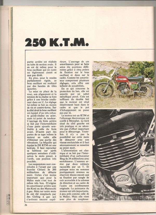 je doit en avoir d'autres et aussi des plus récents des années 80 . il faut que je prenne le temps ces jours ci de regarder dans mes piles de bouquin .j'ai aussi sur la KTM 400 blanche dans un gros bouquin d'époque mais je ne sais pas si je vais pouvoir scanner . la suite bientôt :clin: