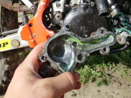 demontage de la pompe à eau pour vérification et là, surprise, du liquide orange mélangé à du blanc visqueux dégueule du circuit d'ou provient t'il???