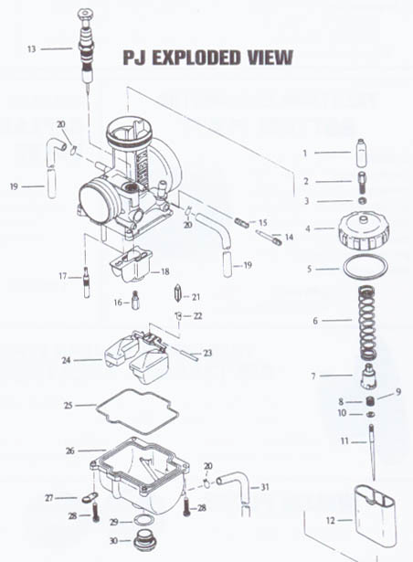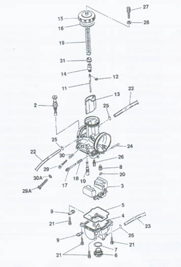 Sur les photo ci-dessous j'ai perdu la vis de réglage de régime de ralenti ( numéro 29 sur le pwk 39)