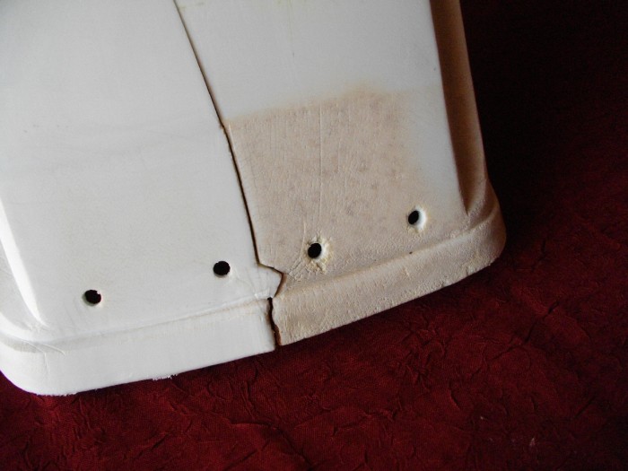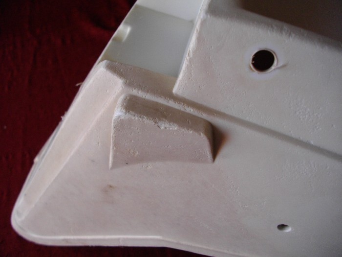 C'est la première fois que je rattrape du plastique bouffé à ce point. L'épaisseur dégradée est très régulière et homogène. 🙂 du coup, c'est, presque simple à faire. ;) J'ai plus de mal avec les caches latéraux. L'un des deux, celui le plus exposé au soleil, est devenu très fin (moitié?) et semble avoir perdu sa coloration dans la masse.