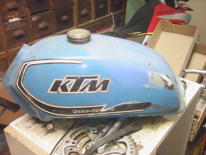 J'aimerais retaper la KTM GS 240 de 1978 de mon padre qui n'est pas en mauvais état. Le principal problème c'est le réservoir qui fuit à l'arrière (il a deja été refait mais ca ne tiens plus).