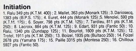 D'abord parce que jusqu'à 1976 il n'y avait pas de classements par cylindrée en France, et parce que les 125 les plus vendues étaient largement les Monark et BPS/SWM. On trouvait ensuite quelques Zündapp, Fantic, KTM et des trails japonais.