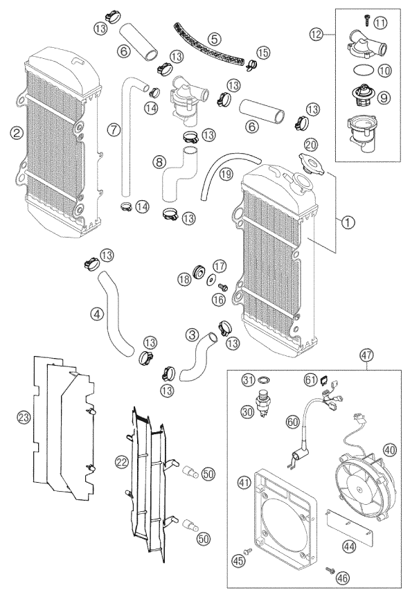 Bonsoir, sur le deuxieme radiateur il n'y a pas de vis de purge  il est relié au premier via une petite durite (5) par le dessus du radiateur. ( je sais pas si je suis tres clair 😳 ) sinon il est relié en bas au cylindre.
