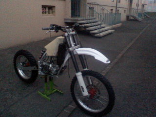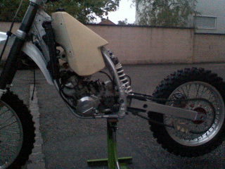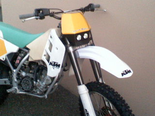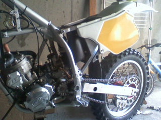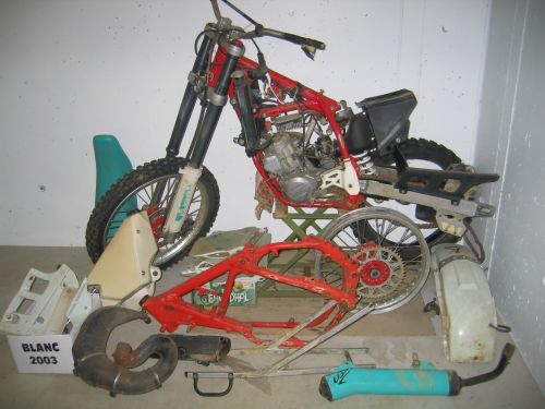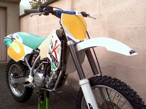 Le bon point en plus c'est que cette ktm modele 92, a été acheté neuf en 94 et que le choc a eut lieu en 97! Ca fait plus de 10 ans qu'elle attend de retrouver la terre fraiche!