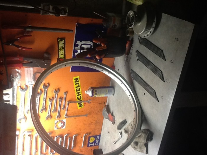 bien, mais j'espère pour toi que tu as noté le sens du montage de moyeu par rapport à la jante et que tu as relevé le déport... 😉
