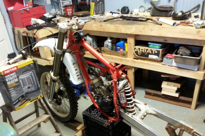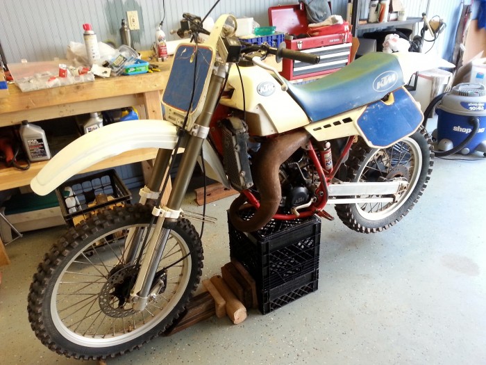 125 MX 1986 avec fourche WP, le T inferieur est brise sur les 2 fourreaux...a suivre