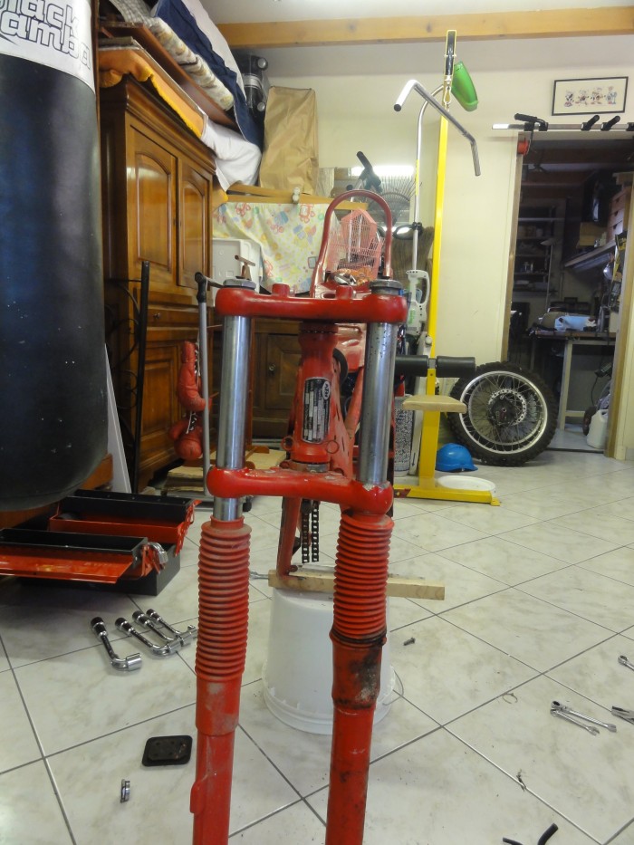 si tu te trouve une petite plateforme elevatrice a pas cher , c'est parfait pour mettre la moto a hauteur et plus te casser le dos