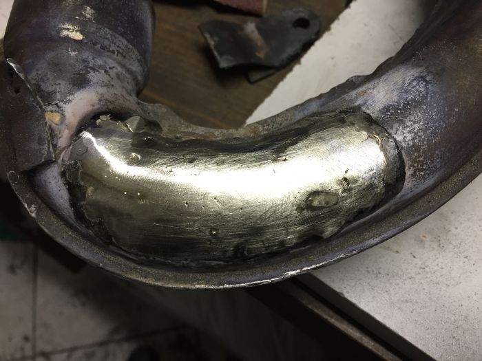 La réparation est plus épaisse que la tôle du pot et en ponçant le bord de la réparation, je risque de percer à côté.