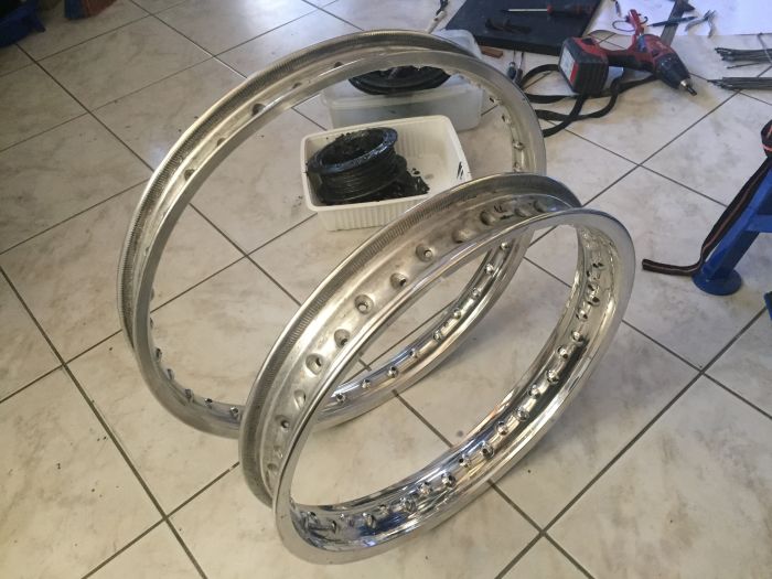 Démontage de la roue avant pour réfection, pas de rayons de cassés (défripant sur chaque écrou une semaine avant)