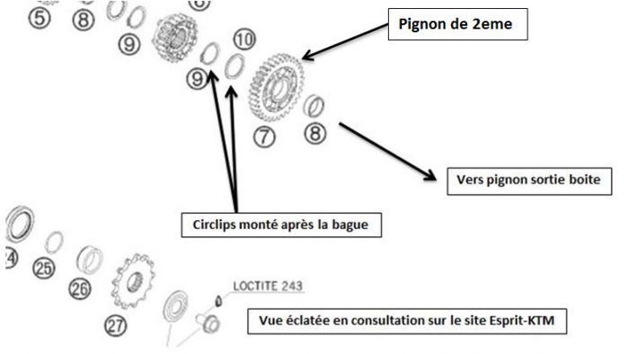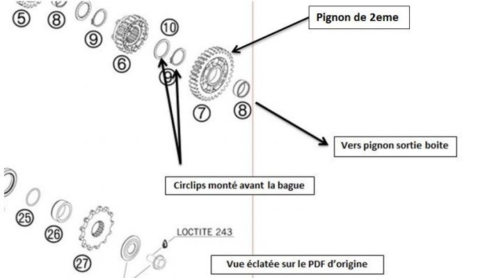 Elles sont à remplacer complètement, avec une petite mise à jour des engrenages en plastique d'entrainement, ainsi que le joint O-ring du couvercle interne qui a une section trop faible, à remplacer par une plus grosse section (comme sur les EXC à partir de 2011)