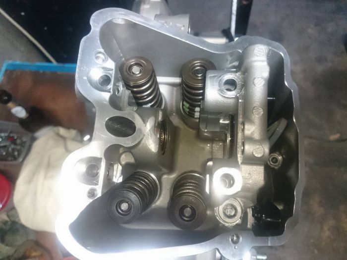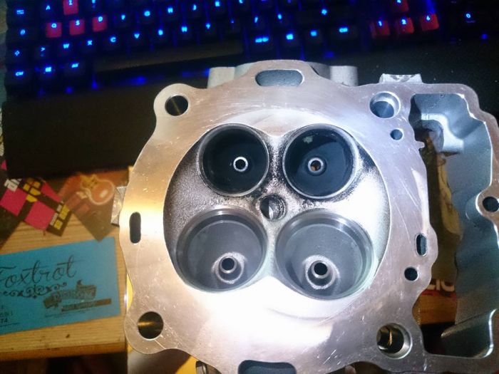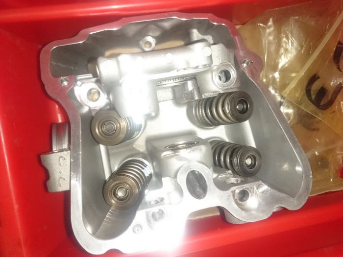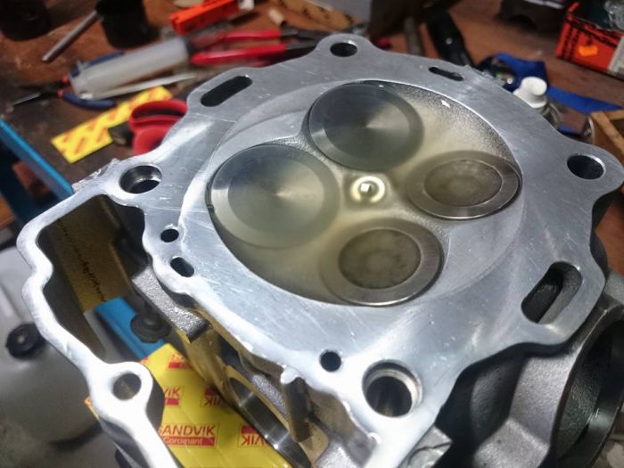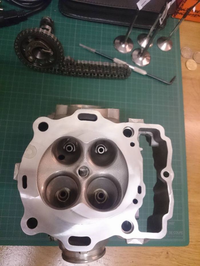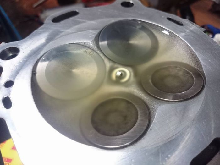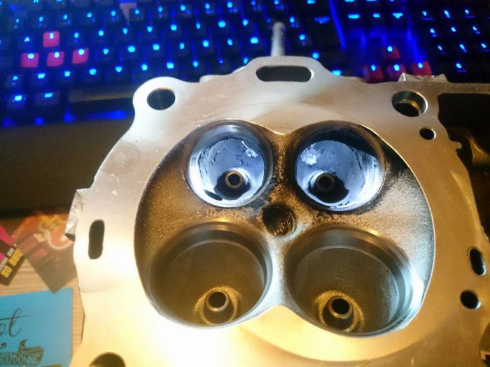 Les sièges de soupapes échappement sont un peu cramés, d'après un spécialiste, ils ne sont pas piqués au point de les usiner pour remettre des neufs, ou remplacer la culasse donc un léger rodage avec une pâte à roder de finition.