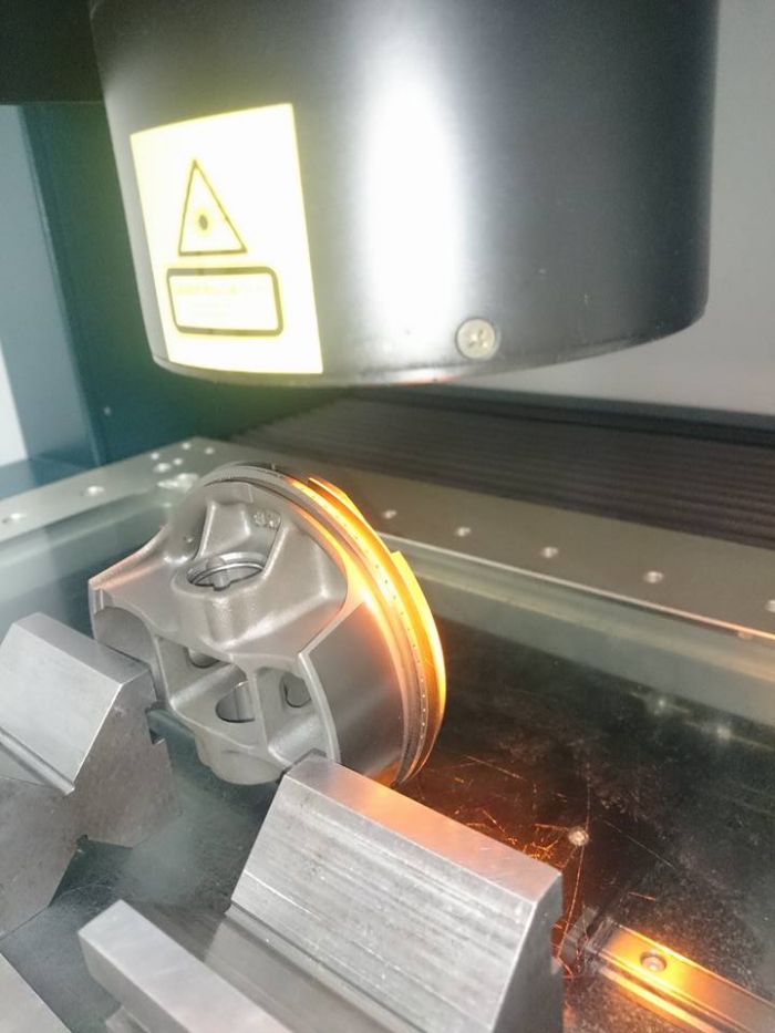 Sur un projecteur de profil, on constate que le piston est guidé dans le cylindre seulement sur la portée des jupes traitées, la partie haute (coté chambre de combustion) a un diamètre qui descend en cône (-0.65mm), cela m'a surpris au départ mais ce serait du à la dilatation de l'aluminium à cause de la chaleur... alors pas d'inquiétude.