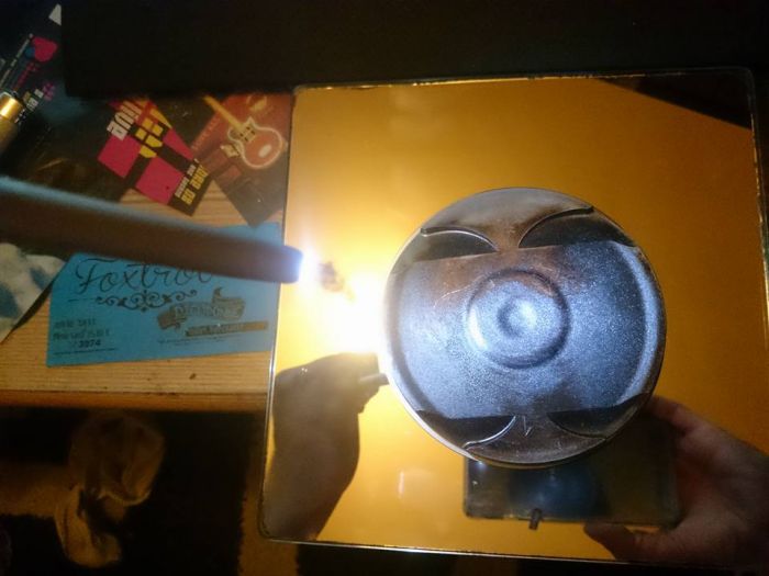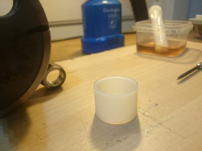 Phase critique, des gens ont eu des soucis d'appairage, des kits cylindre / piston neuf livrés d'usine avec des tolérances proches du maximum, donc pour être sûr, j'ai saboté le montage d'origine pour mesurer séparément le cylindre et le piston.