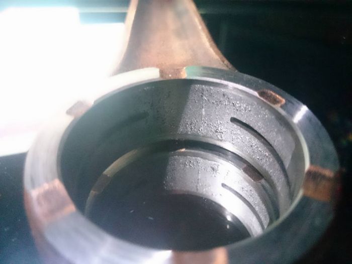 Le mécanicien d’un autre concessionnaire m'a fait remarquer que le jeu à la tête de bielle était surement la cause du remplacement du cylindre et des PAH, la bielle balançait de +2mm au niveau du piston, donc cage à rouleaux + bielle au cimetière.