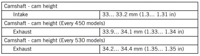 Les hauteur des cames sont dans les tolérances du manuel, proches des cotes maxi donc pas d'usure.