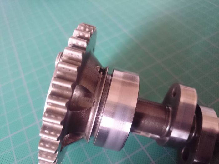 On voit des traces de matage sur la roue dentée, venant de la chaine distri mais c'est seulement visuel, en passant une pointe à tracer, il n'y a pas de relief et ce n'est pas creusé.