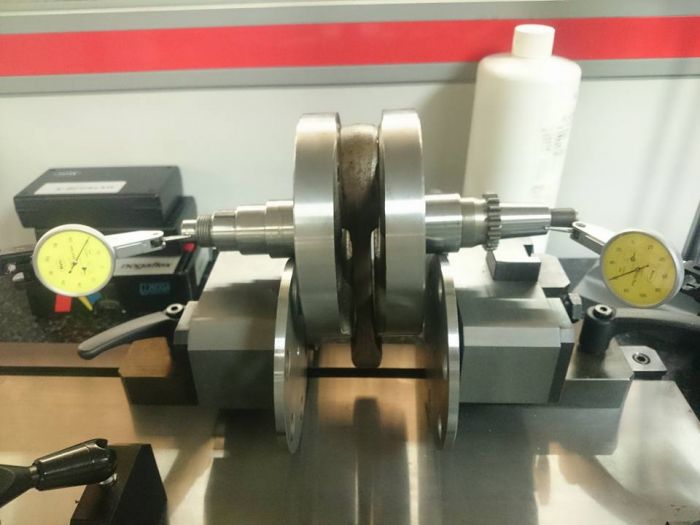 Après révision de l'embiellage, je l'ai passé sur le montage de contrôle, 15 microns de faux rond entre la portée de joint spy et la portée de rotor d'allumage.