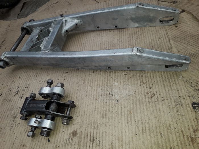 photo trouvée sur un post de ce forum avec le commentaire suivant : " Et c'est parti : tout y passe. Bras oscillant, biellettes et basculeur de l'amortisseur et amortisseur lui-même.