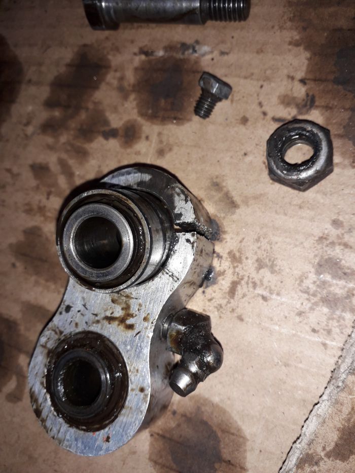 au rapport  :   Biellette du bras oscillant HS .  l'une des deux partie en alu est fendue et les 4 roulements sont morts et archi morts.