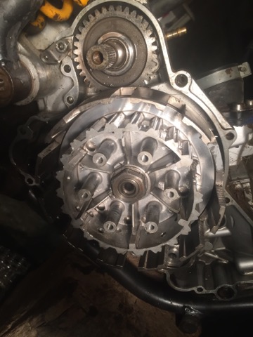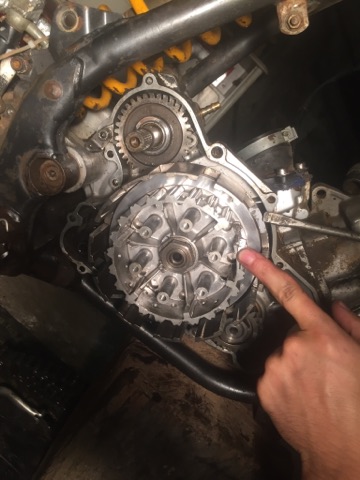 Si t'as pas fait la vidange, tu vidange, ouvre ton carter d'embrayage et regarde comment c'est foutu. Si tu as déjà fait ta vidange, couche la moto sur le côté, démonte ton carter et ...