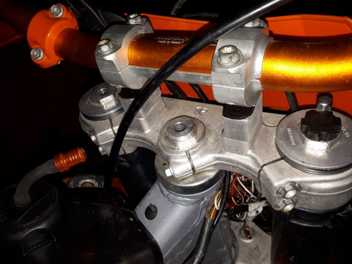 Voilà elles sont en place, fixées sur le T par des vis CHC M10X35 tête fraisée et avec les vis CHC de fixations du guidon M10X45 ça devrait pas bouger ;)