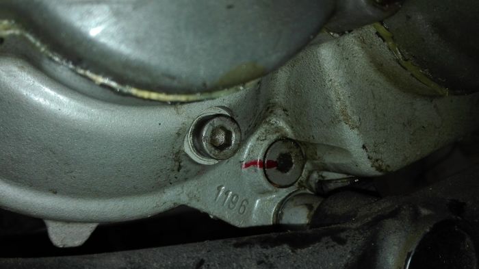 - à quoi sert cette vis (marquée d'un trait rouge et qui n'apparait pas sur l'éclaté moteur que j'ai) qui est dans l'axe du fichu boulon de vidange