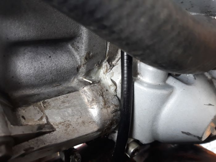 Autre autre déconvenue, le jointoyage entre carter et haut moteur est réalisé au silicone.... et ca me donne l'impression de transpirer l'eau par le plan de joint. Tout comme le petit carter qui cache la pompe à eau.