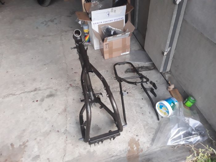 Bon ben voila la moto est en pièces détachées, il y a plus qu'à tout nettoyer, remplacer ce qui a besoin de l'être, ou trouver un équivalent et réparer ce qui en a besoin.