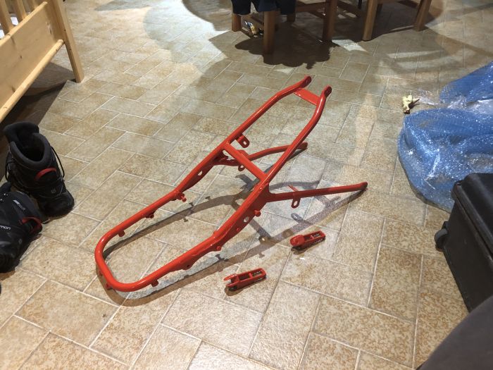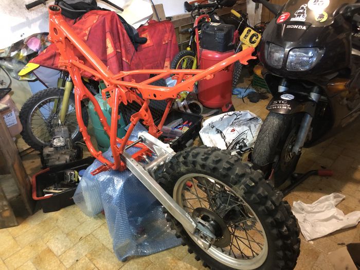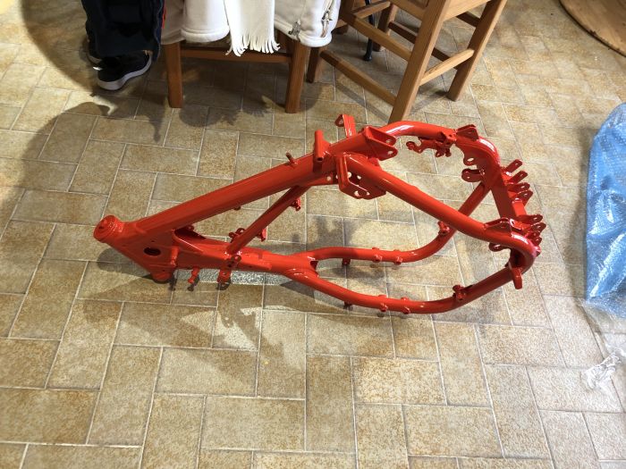 je suis entrain de me tâter fortement a faire sabler et repeindre en thermolaquage le cadre et la boucle arrière car ceux ci ont été repeint a la bombe rouge sur des parties .