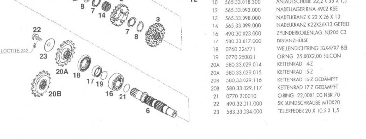 Sur l'empilage de l'axe secondaire, il faut ajouter un joint torique (25x1mm) avant d'insérer la bague du roulement.