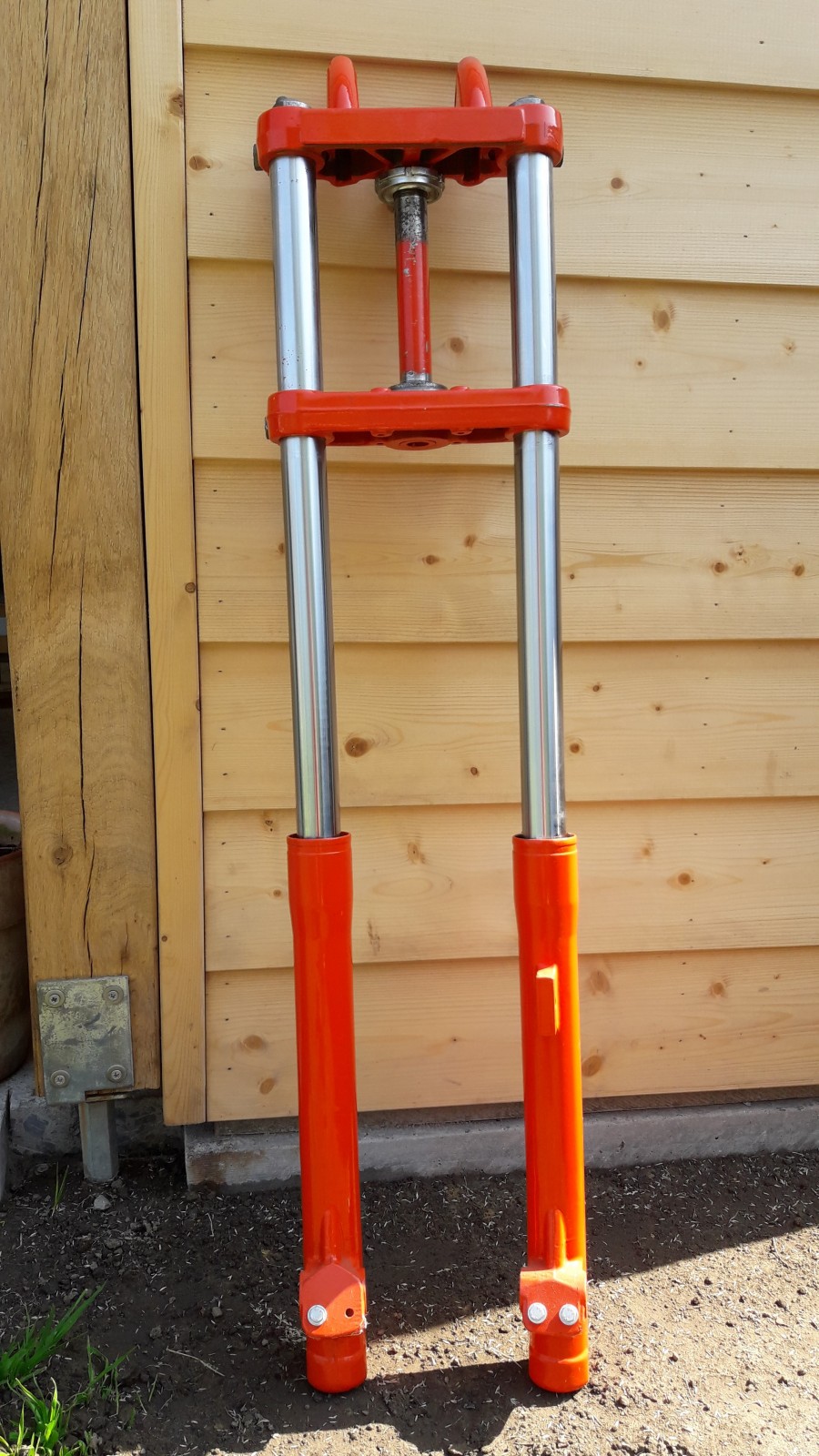 malheureusement tout est démonté dans des caisses ...c'est la moto acheter pour ma femme étant elle aussi une fanatique de KTM .Avec le problème de la fourche qui est compliqué à résoudre . Le projet est compromis la peinture est en n'attente , je ne sais même pas si elle va être finie ...( quel Gâchis)