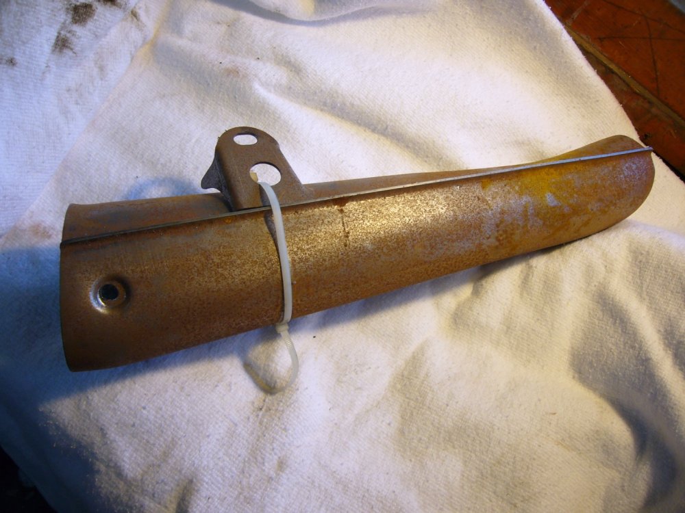 Ce que j'appelle le tromblon est un tube fait de 2 demies coquilles soudées qui recouvre le tube de fuite de ton échappement et sert à la fixation du silencieux .