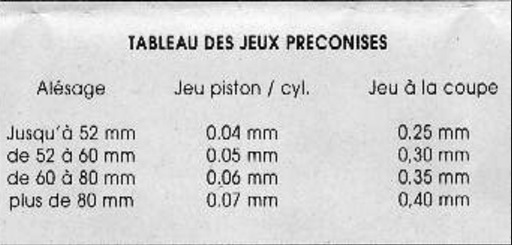 Pour la côte de ton piston , le mieux 'est de faire faire une métrologie de ton cylindre/piston par qqu'un qui s'y connait et qui a le matériel ( palmer , etc )