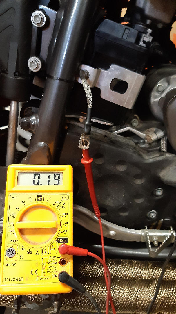 Place l'ampèremètre entre masse et batterie, si un fil t'échappe, il y a moins de risque de court-jus.