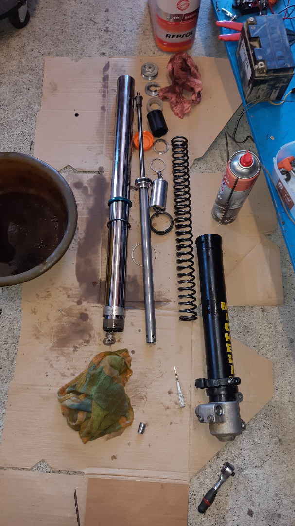 Malgré le démontage/nettoyage complet de l'étrier avant, le frein avant reste bloqué, doit y avoir un soucis du MC, à suivre....