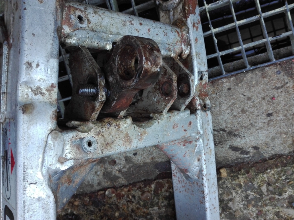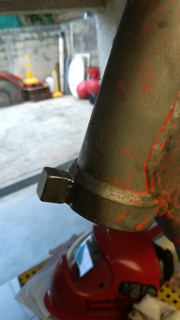 fourche posée après usinage de l'axe du té de fourche avec roue et freinage 250kx et changement de tous les roulements