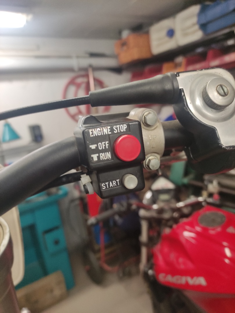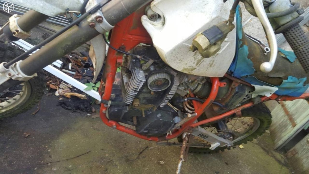 ok quelques petits travaux a prévoir moteur bloqué fourche piquée de rouille mais pas grave le projet n'est pas de la remettre d'origine moteur 600 pegaso avec démarreur electrique