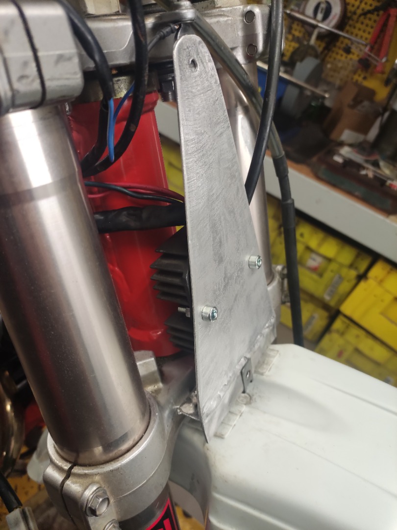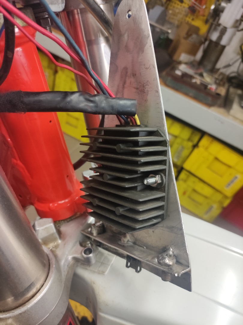 Suite du remontage carbu nettoyé en profondeur fixation du régulateur a voir si vraiment utile ? Pose batterie et relais démarreur sous la selle et adaptation du silencieux de 450 rmz bientôt test démarrage