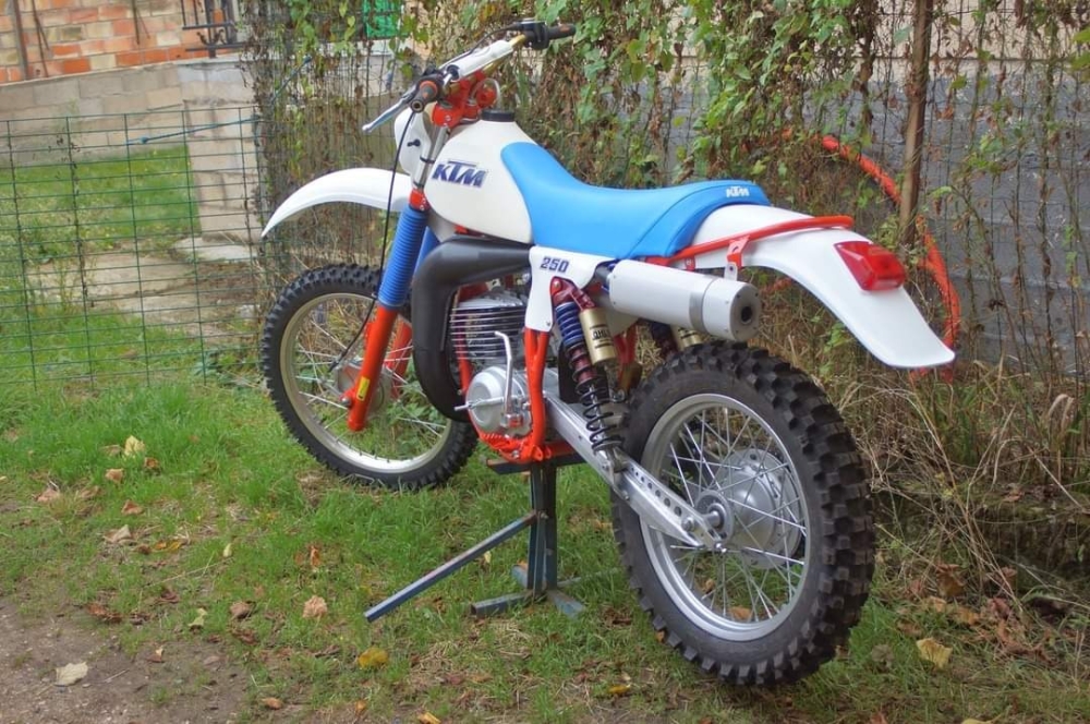 Je possède une 240 KTM GS depuis 83, que j'ai passé en 250 ,je suppose comme tout le monde ,et modifié façon 82 avec 2 amortos.