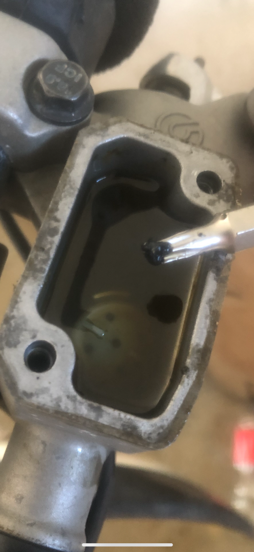 Après avoir ouvert le capot du réservoir du liquide hydraulique, j’ai constaté comme une pâte noir, ( comme graisse ou limailles, je ne sais pas ) j’ai une photo, la pâte est ce qui est au bout de l’embout torx.