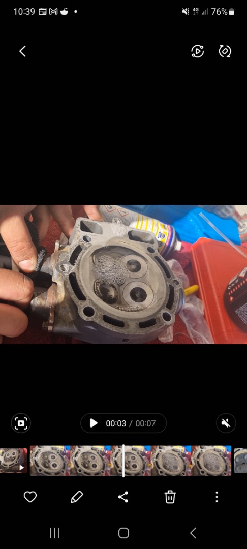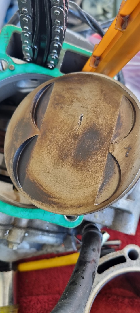 Update : après mesure les jeux sont correct et dans les côtes pour le cylindre et le piston , cependant j'ai fait un test d'étanchéité des soupapes (methode archaïque) et voilà les 4 sont plus ou moins étanches mais il y en a une qui par mon test me semble pas du tout étanche je vous mets une photo mais il ya énormément de bulle ,tandis que les autres sont OK pas trop de bulle je sais que c'est impossible d'avoir une soupape complètement étanche. Je n'ai pas pu les démonter l'outil que j'ai commandé était trop fragile . J'ai pu constater que le piston n'avait pas été toucher par une d'elle. Aucune marque visible.